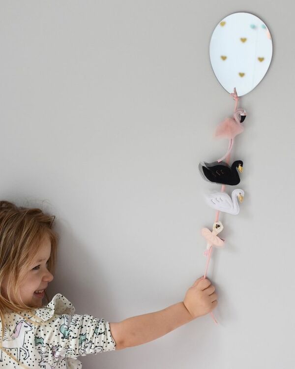Superfin ballongspegel gjord i tålig akryl. En fantastisk dekoration till barnrummet och en fin inredningsdetalj som du kommer att älska. Använd gärna snöret för att fästa barnets favoritklämmor.