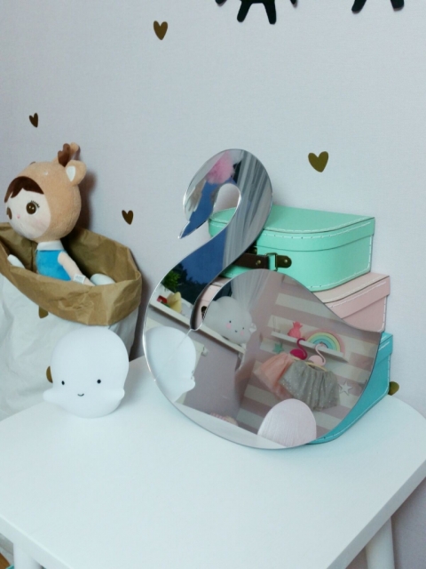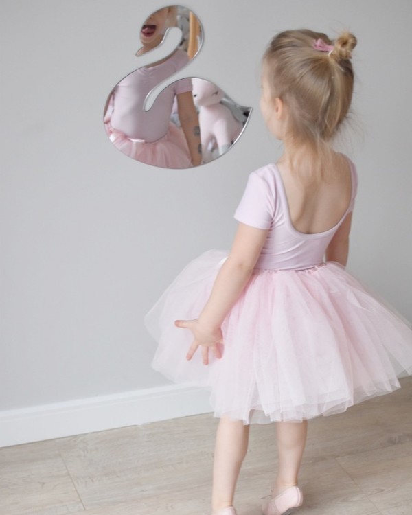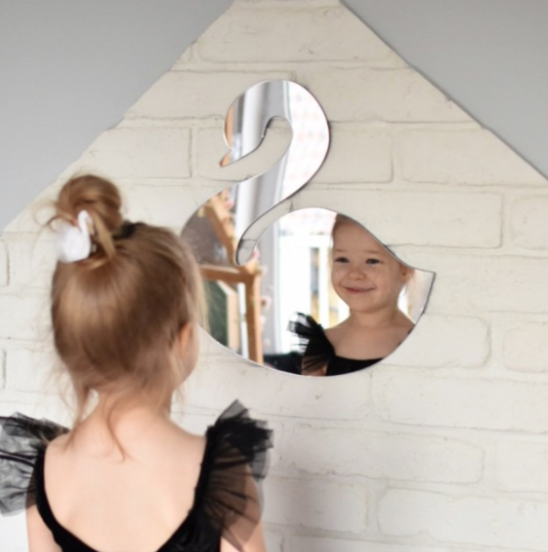 En superfin spegel till barnrummet gjord i okrossbar akryl och i formen av en svan.