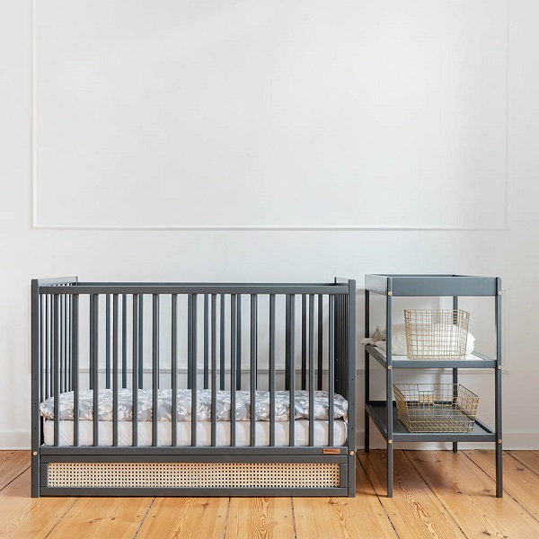 Klassisk antracit spädbarnssäng som har tidlöst design och kommer att passa i varje barnrum.