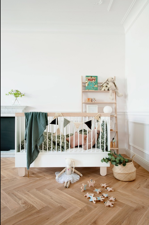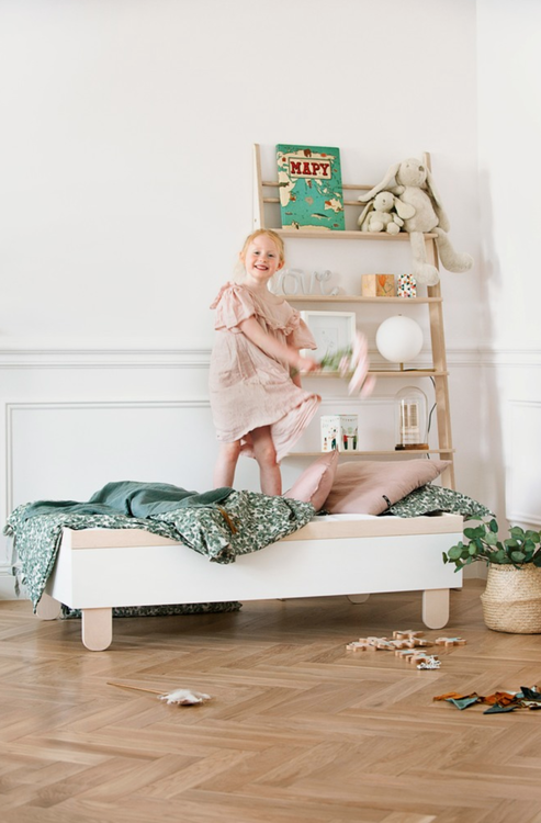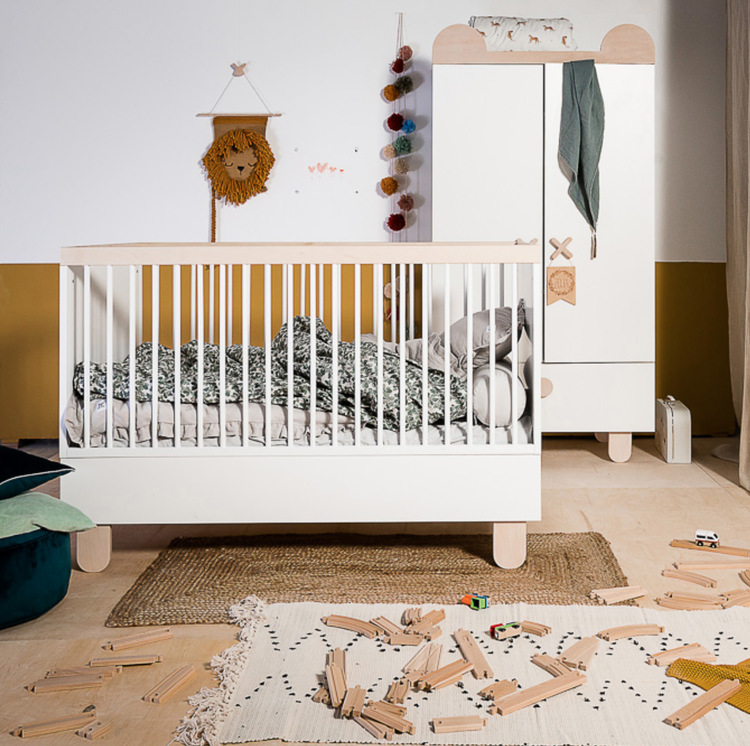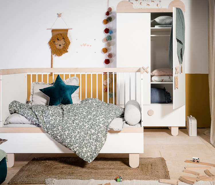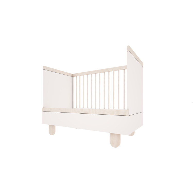 Handgjord och unik ”2 in 1” spjälsäng och juniorsäng i fin vit/natur färg.