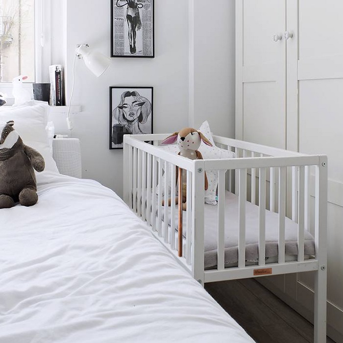 Spjälsängen kan också användas som en bedside crib, som också kallas för sidosäng, och kan placeras både till höger eller vänster om föräldrarnas säng. Perfekt för mindre rum tack vare sin nätta storlek. Starry Night är ett säkert alternativ till de populära Moses-korgarna.