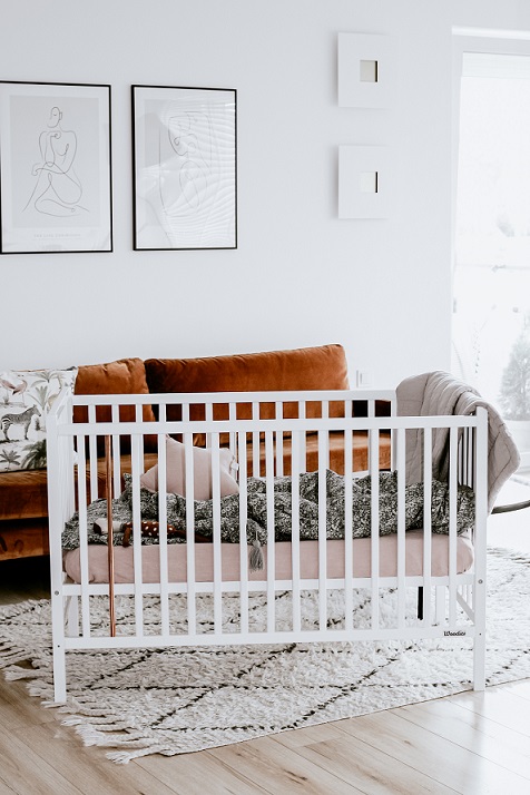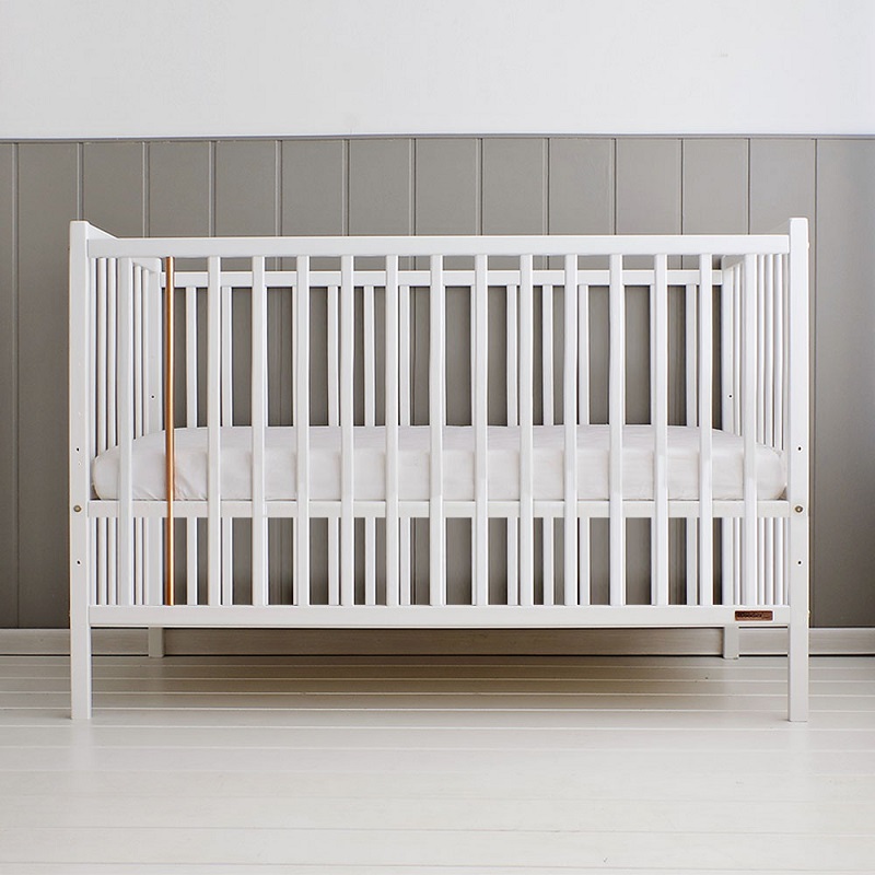 Klassisk vit spädbarnssäng som har tidlöst design och kommer att passa i varje barnrum.