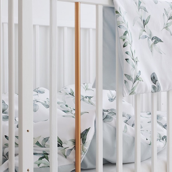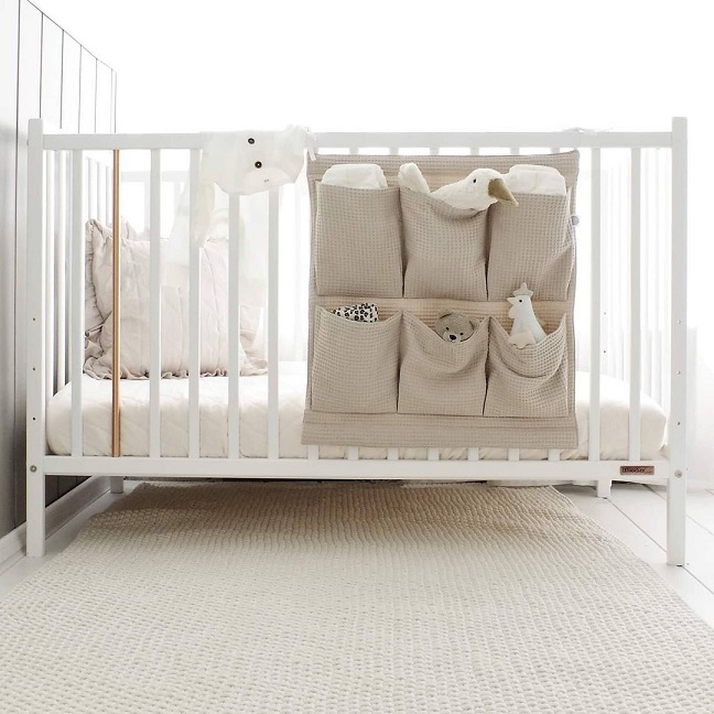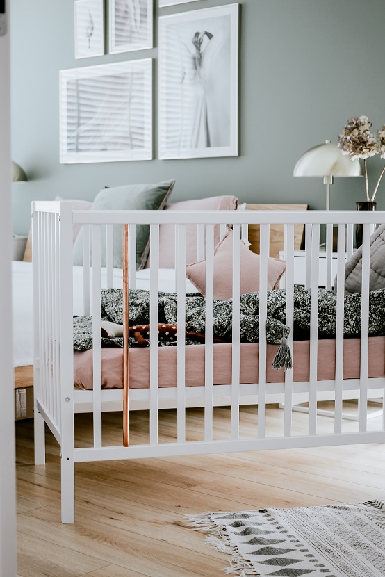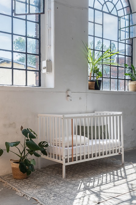 Den här fina spjälsängen kan anpassas efter barnets utvecklingsfaser, bland annat genom fyra nivåer på sängbotten. När barnet är stort nog att kliva i och ur sängen själv, så kan man även ta bort tre spjälor. Unikt och praktiskt!