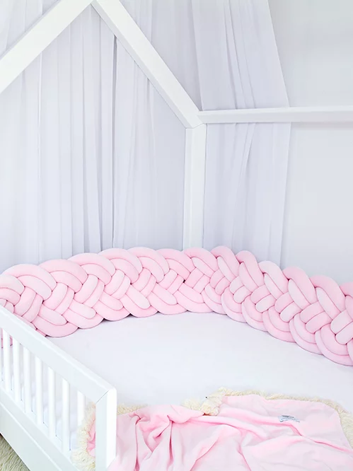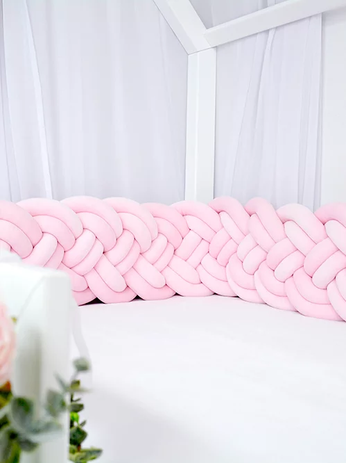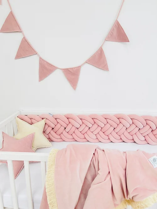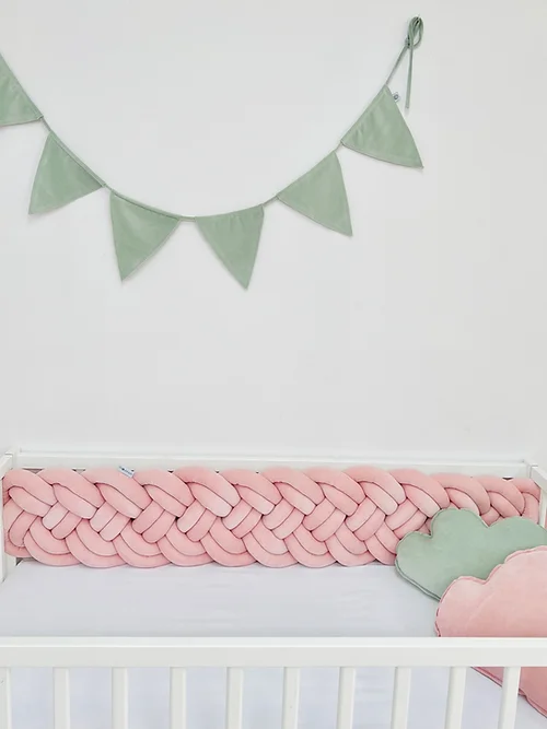 Spjälsängskydd, tunn fläta – Dusty Pink