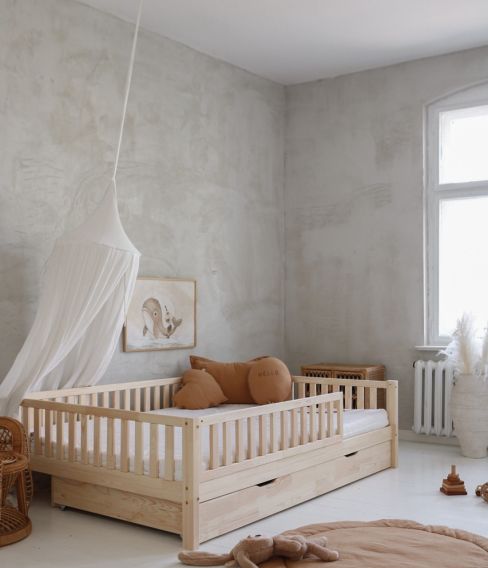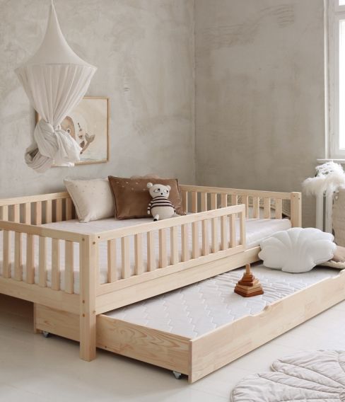 - 200 cm lång – täcker halva spjälsäng (60×120 cm) eller juniorsäng (70x140cm alt 80×160 cm )