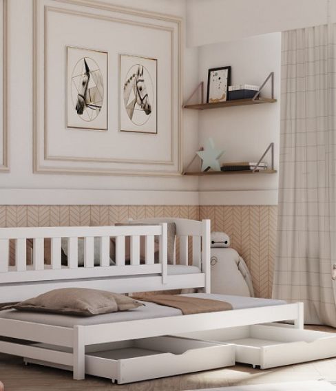 - 200 cm lång – täcker halva spjälsäng (60×120 cm) eller juniorsäng (70x140cm alt 80×160 cm )