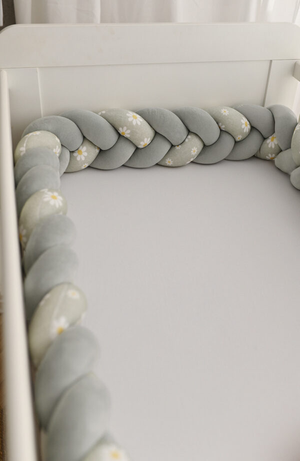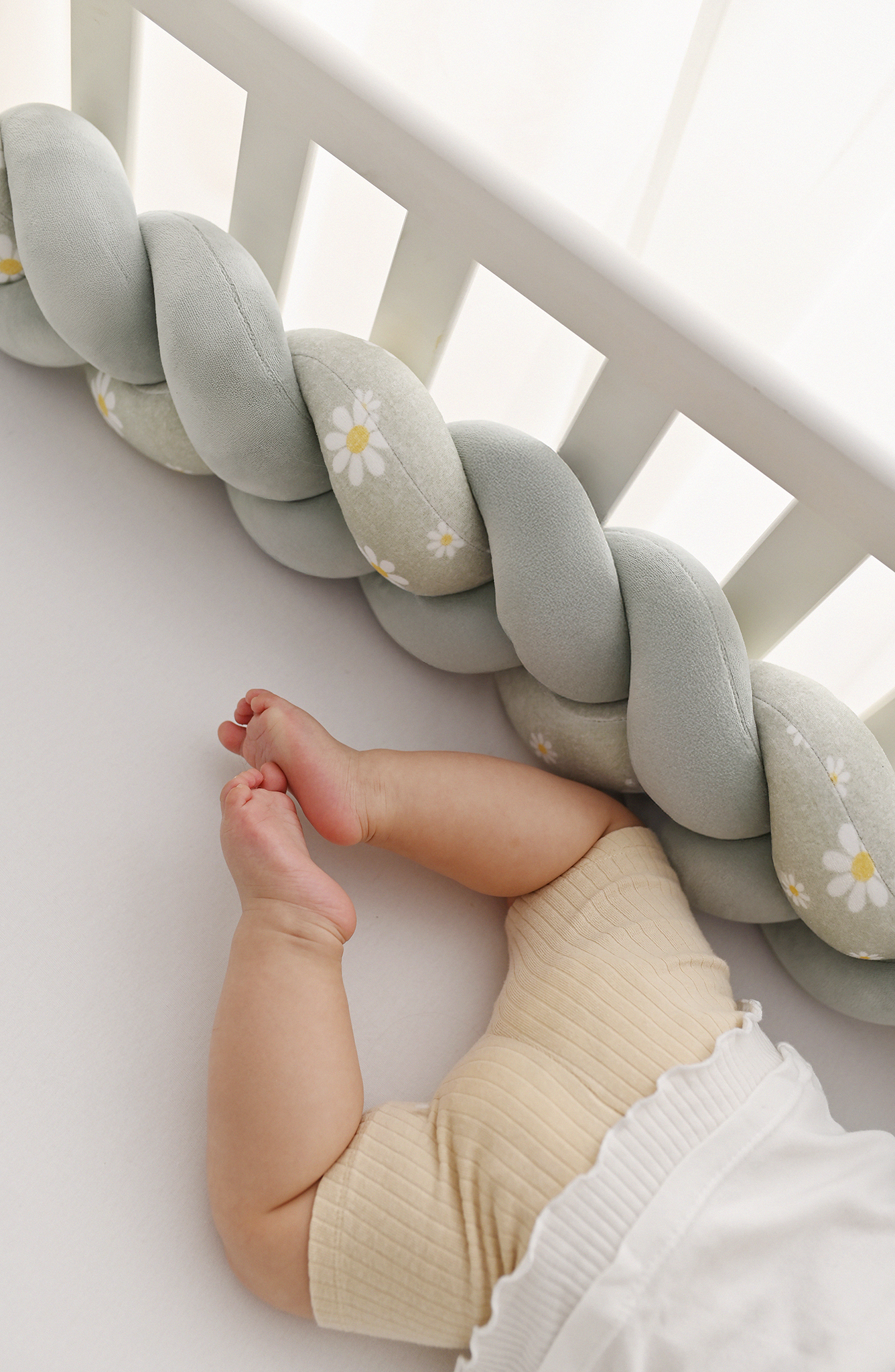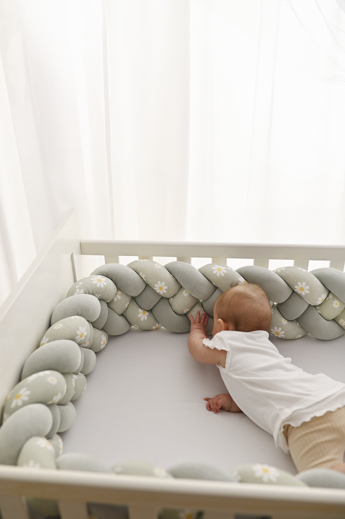 Detta spjälsängsskydd är tillverkat av ett mjukt och elastiskt tyg som inte enbart har en vacker design, utan samtidigt är mycket bekvämt för ditt barn att vila huvudet på.