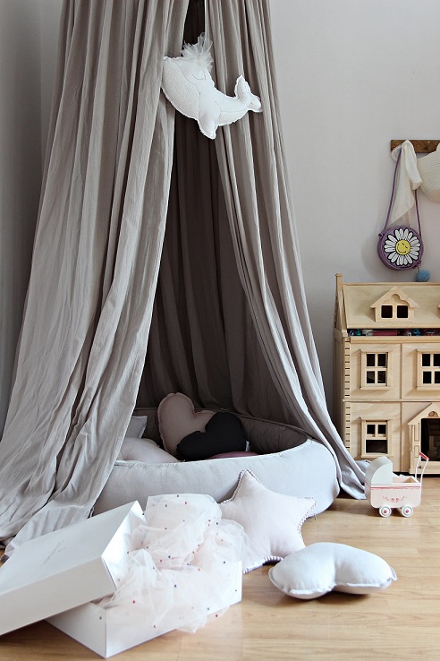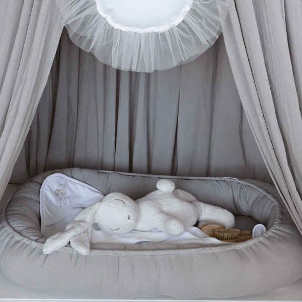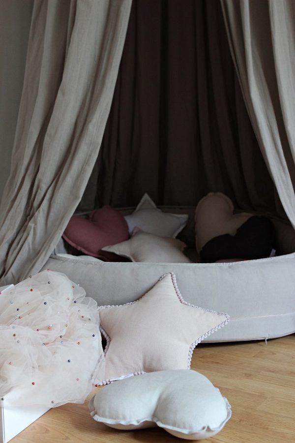 En mycket charmig och vacker mörkbeige sänghimmel tillverkad av högkvalitativt bomull . Designad i en enkel form och i en typisk skandinavisk stil. I varje rum som denna används kommer en sagokänsla att spridas. Perfekt för att inreda barnrummet på ett bra sätt. Sänghimmeln är dessutom förberedd med en praktisk anordning i mitten för att kunna hänga favoritsakerna.