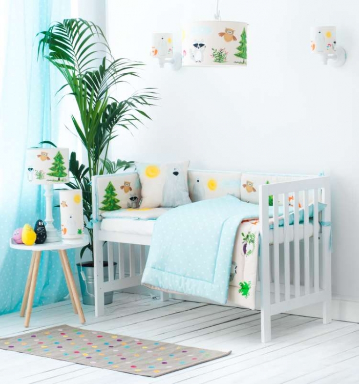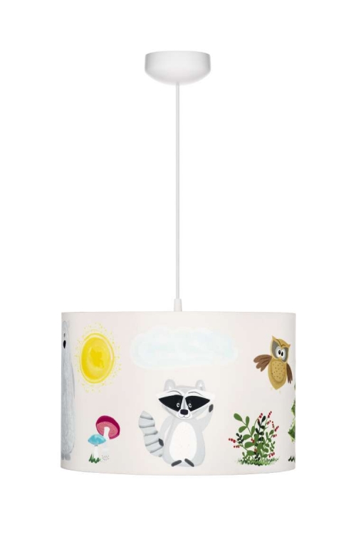 En underbar taklampa till barnrummet med ett motiv av underbara djur.Lampskärmen är gjord av 100% bomull och fungerar utmärkt tillsammans med andra produkter från samma kollektion.Taklampan har lekfulla pastellfärger och kommer att ge barnrummet en speciell charm.Mått: Lampskärm diameter 35 cm, höjd 23 cm. Lampkabeln är anpassningsbar i längd.Designer: Lamps&Company