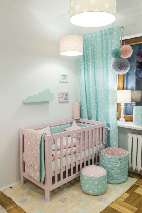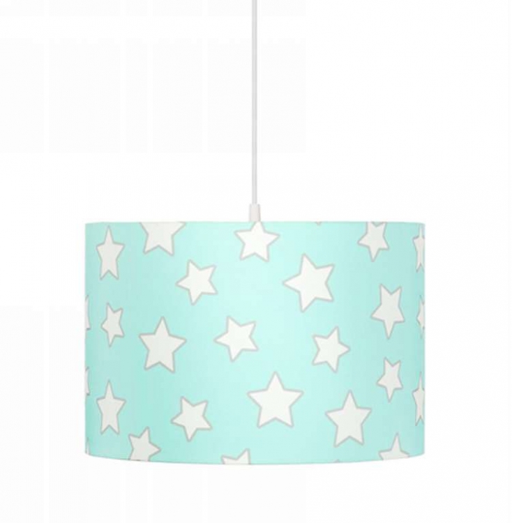 Taklampan är gjord i bokträ och textilen på lampskärmen är gjord i 100 % bomull. Lampan fungerar utmärkt tillsammans med andra produkter från Pink Stars, Mint Stars, Grey Stars och Chevron Mint.