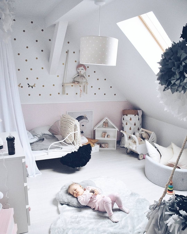 En underbar beige taklampa till barnrummet med ett motiv av söta små prickar.