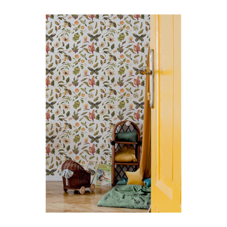 Tapeterna trycks i rullar om 50x280cm. De är skapta för att gå i varandra genom att lägga dem kant i kant, vilket gör att motivet hänger ihop hela vägen och skarvarna uteblir. Fabrikatet är ett klassiskt matt flizelinepapper som du limmar på väggen. Tapeten har en delikat struktur och tar fram färgerna på ett fantastiskt sätt.