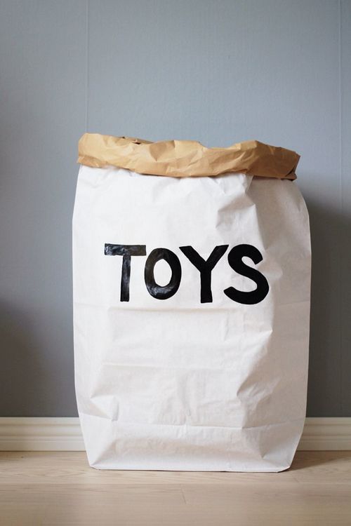 Tellkiddo papperspåse med texten TOYS på framsidan. Denna fina förvaringspåse är helt gjord i papper och unik i sitt slag.