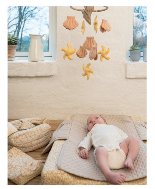 En fantastisk fin och helt handgjord sängmobil för de allra minsta i hemmet. Skapa din egna och unika miljö i barnrummet med hjälp av de små mjuka sjöstjärnor som tillsammans med musslor flyter långsamt i luften.