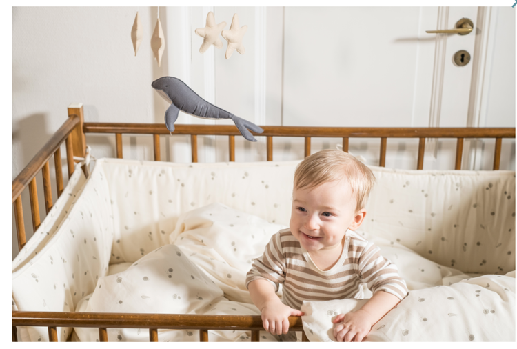 En fantastisk fin och helt handgjord sängmobil för de allra minsta i hemmet. Skapa din egna och unika miljö i barnrummet med hjälp av de små mjuka stjärnor som tillsammans med molnen och valen flyter långsamt i luften. Mått: Höjd 50 cm Material: 100 % organisk bomullDesigner: That`s mine