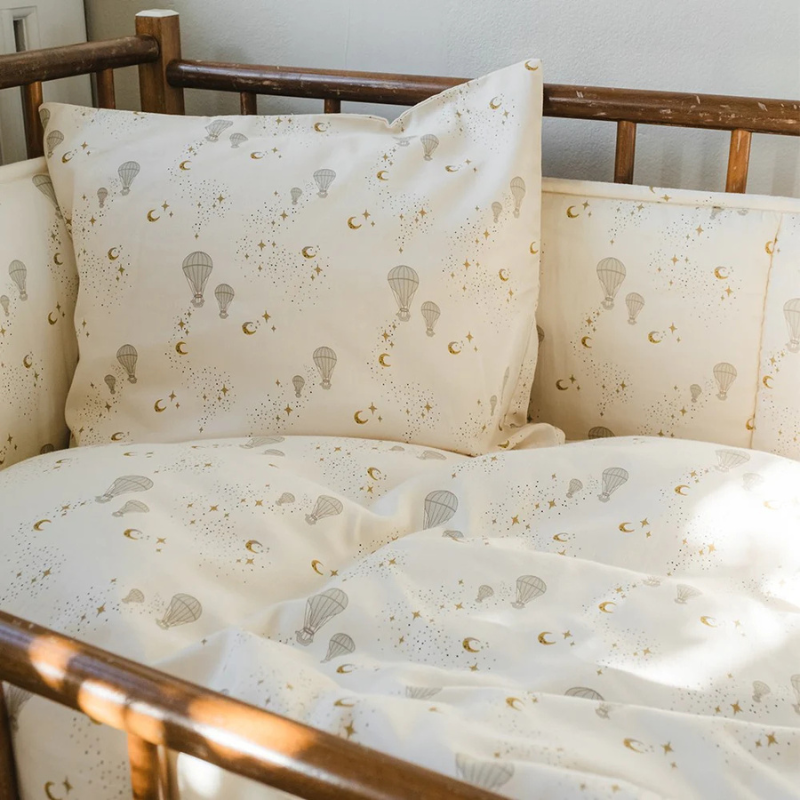 Spjälsängsskyddet har praktiska knytband som är gjorda av bomull. Fyllningen består av skön fibervadd som gör att spjälskyddet håller formen länge. Matcha gärna med påslakanen ur samma kollektion för att få ett vackert helhetsintryck.