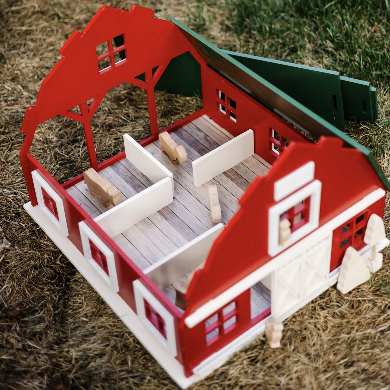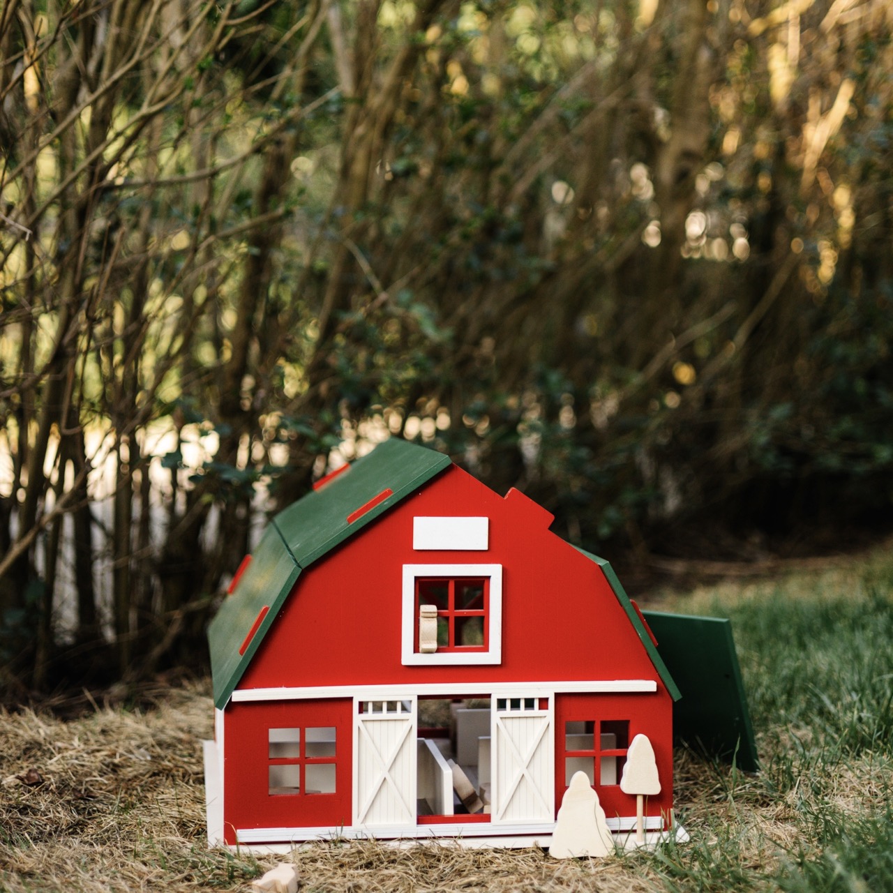 The Dutch Barn Dollhouse är kompakt, portabelt och tidlöst.