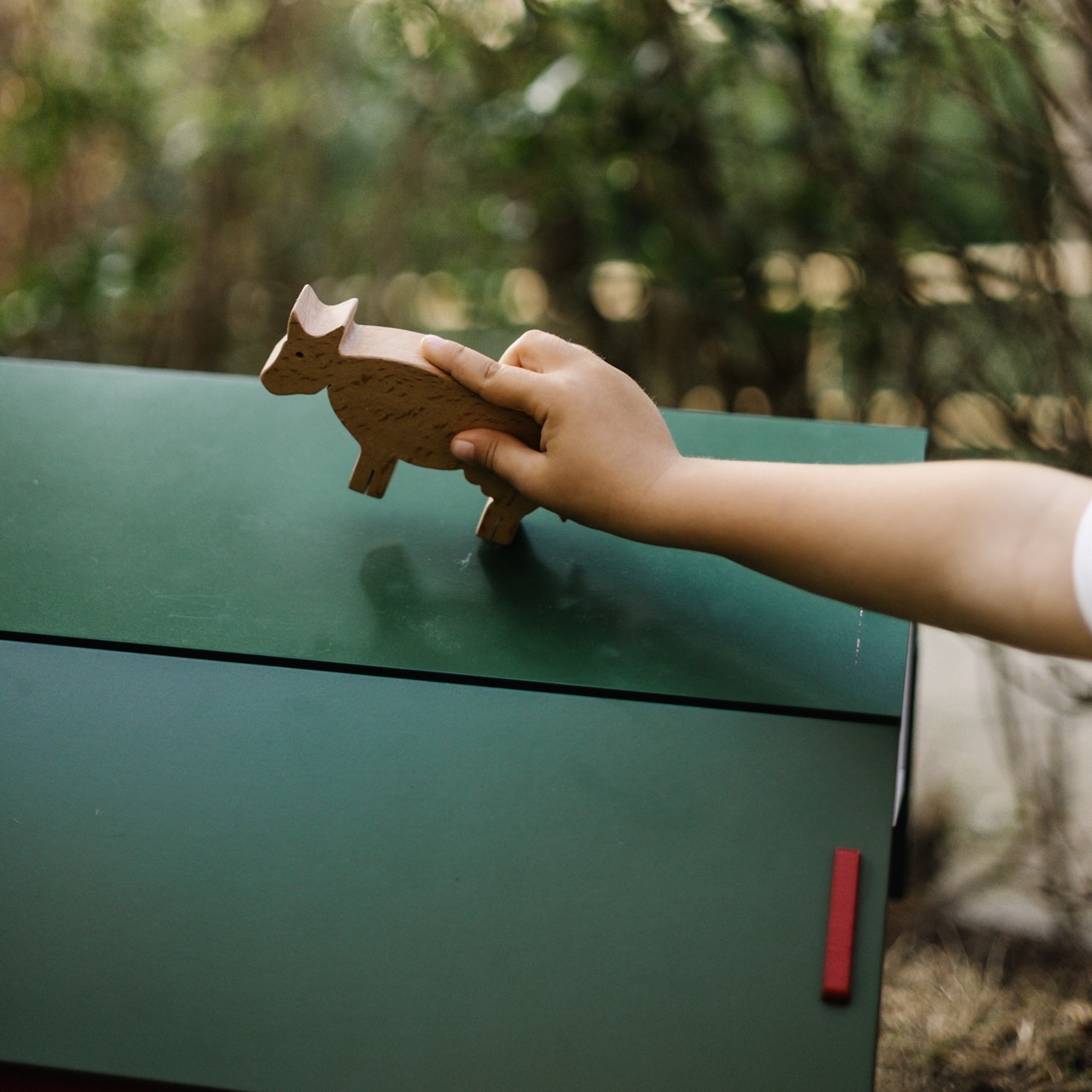 Inuti hittar du en liten samling handgjorda trädjur: