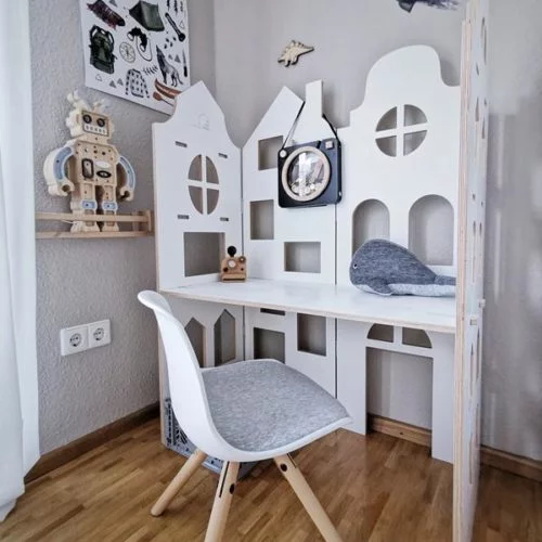 Abra kadarbra sim salabim! Denna magiska 2-i-1 möbel från My Mini Home är den perfekta detaljen i i barnrummet.Med några enkla steg, helt utan verktyg, kan den användas som ett skrivbord eller en rumsavdelare. En unik produkt med många användningsområden som kan användas i många år i takt med att barnets intressen ändras.Gjord för hand av plywood från certifierade skogspartier och målad i…