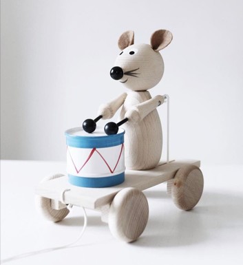 En underbart fin och fantastisk träleksak från Ella & Frederik, i formen av Theodor och hans trumma som följer med när barnet drar den över golvet.