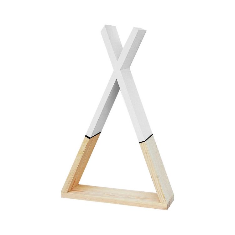 Tipihylla, vit  Vill du göra en snabb och enkel förändring i barnrummet? Skaffa då denna tipihylla och ge rummet karaktär. Hyllan är helt gjord i pinjeträ och byggd för hand. Den är målad med akrylfärg som är skonsam mot barns hälsa. Finns i följande färger: svart, vit, rosa, mint, grå och turkos. Mått: 55x35x10 cm.