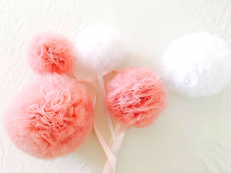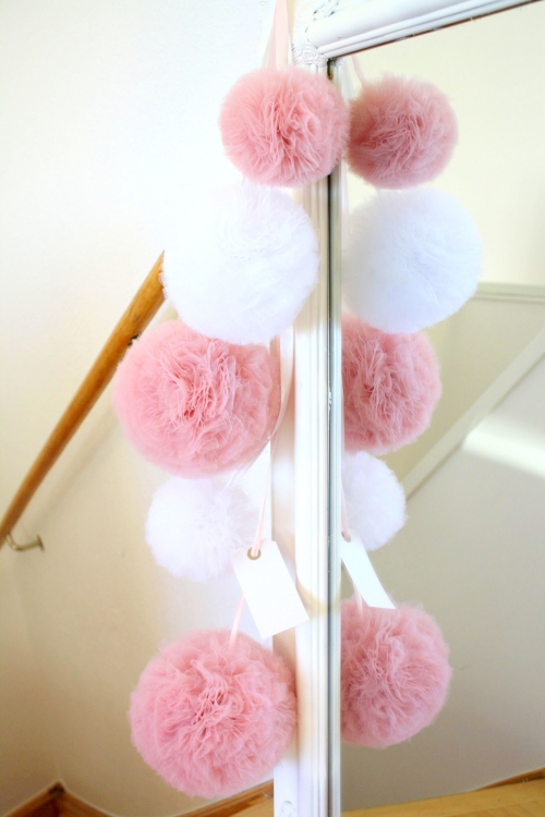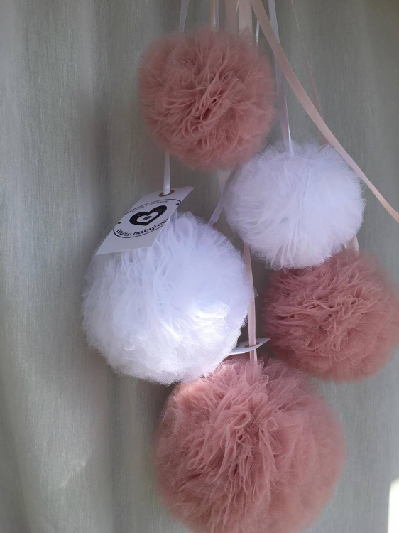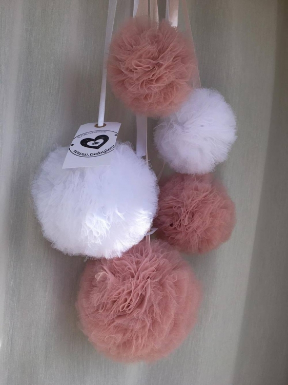 Tyll Pompoms set (Tyllbollar)- rosa/vit