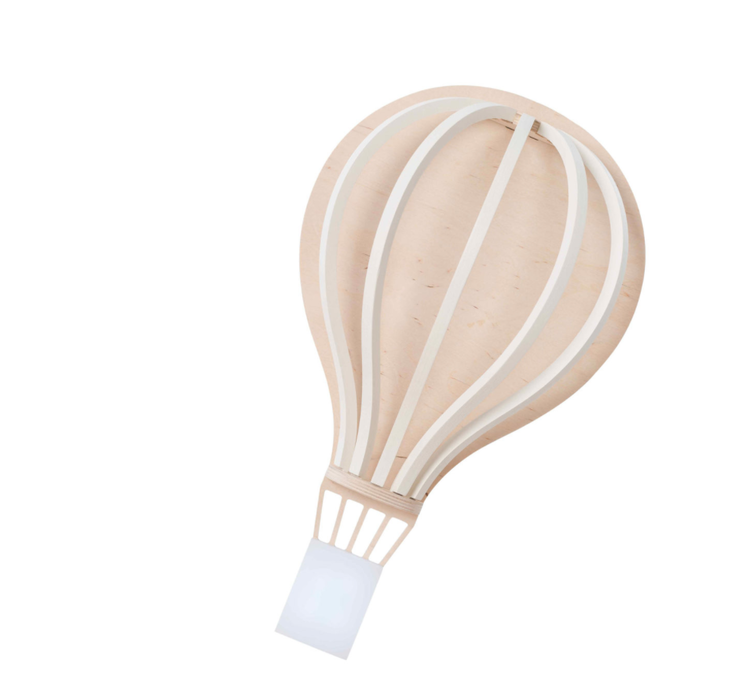 Det här är en unik och speciell lampa i formen av en luftballong. En smart LED 3D lampa som samtidigt blir en perfekt detalj i barnrummet.Luftballonens korg har en mjölkvit färg, och luftballongen skapar ett himmelslik atomsfär även när den inte är på. En garanterad stämningshöjare som kan användas i många år.Mått: 46 x 27 x 16 cm Längd elkabel: 2 m Tillbehör som ingår: Krokar och pluggar.