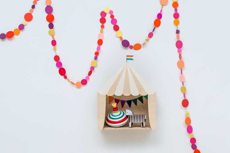 Denna cirkus är inte bara för elefanter, teddybjörna eller andra artister, framförallt skapar denna kreativa hylla en massa magi i ditt barnrum. Alla som ditt barn tror kan underhålla eller utföra något bra rick bör få en plats på denna cirkus. Flaggorna vajar dessutom åt exakt det håll som ditt barn vill.