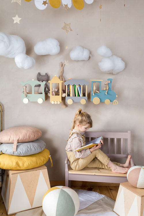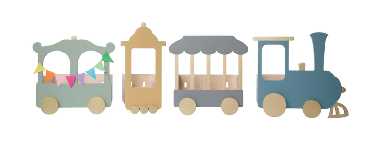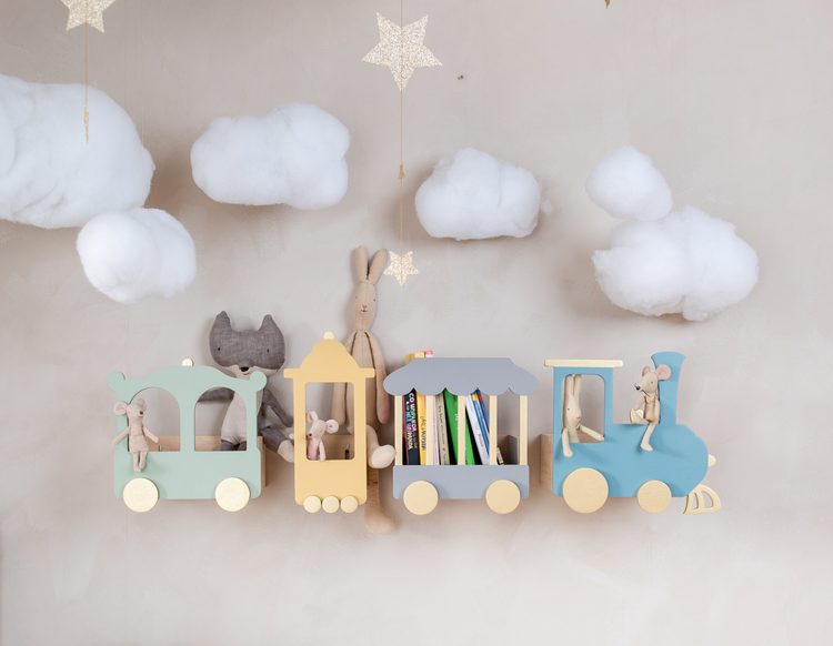 Denna underbara tåghylla kommer ta plats i ditt barnrum och skapar med sin existens liv och rörelse. Ditt barn kan med fantasin åka med tåget vart de än vill, och alltid ha med sig sina fina saker. Ett riktigt lekfullt cirkuståg som samtidigt fyller en praktiskt funktion, bättre än så blir det inte.