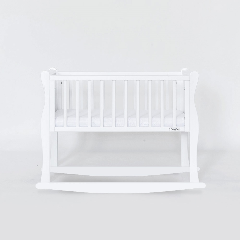 Avtagbara medar medföljer så att du lätt kan göra om din vagga till en spjälsäng om du så önskar. Spjälsängen kan också användas som en bedside crib, som också kallas för sidosäng, och kan placeras både till höger eller vänster om föräldrarnas säng. Perfekt för mindre rum tack vare sin nätta storlek.