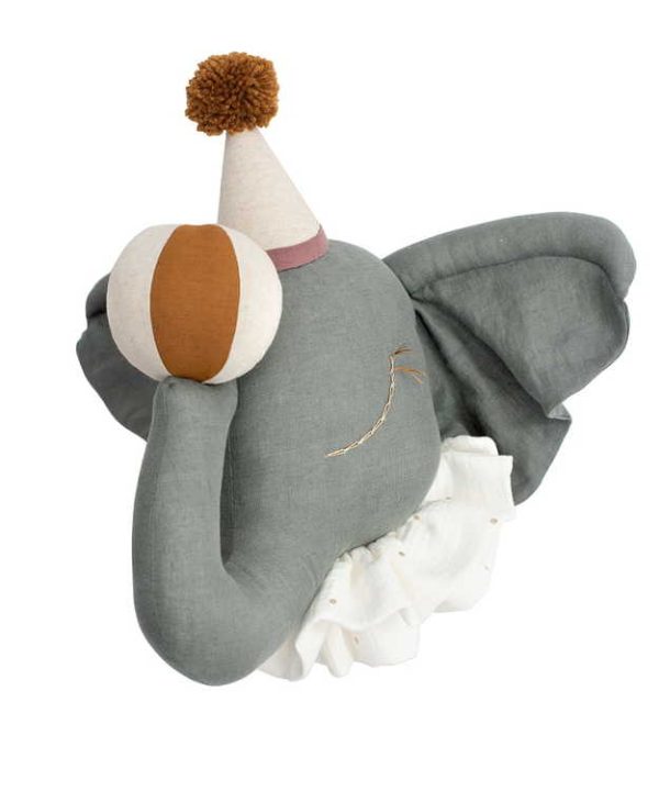Superfin väggdekoration i form av en grå elefant gjord av härligt linne gör att denna elefant är väldigt mjuk och mysig att känna på. Samtidigt som det är en fantastiskt vacker dekoration till barnrummet.