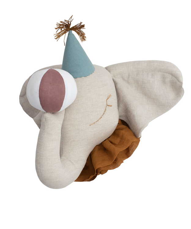 Väggdekoration natur blå cirkuselefant djurhuvud i linne