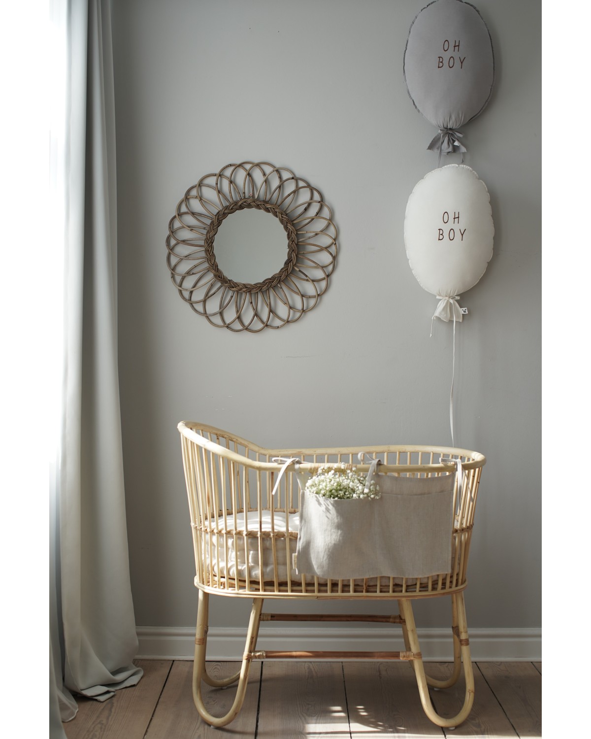 Superfin kudde i form av en ballong gjord av mjuk och härlig bomull som gör att den blir väldigt mysig att känna på. Ballongen kan även hängas upp på väggen tack vare den påsydda tygöglan på baksidan. Vare sig du använder den som kudde eller väggdekoration kommer den att vara fantastiskt vacker i barnrummet.