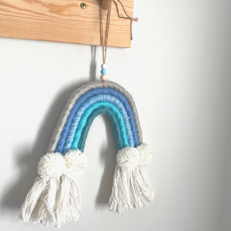 Underbar väggdekoration i form av en regnbåge. Häng den ovanför sängen eller var du vill för att skapa en drömvärld i ditt barns rum. Mått: 17 x 17 cmMaterial: 100% polyester