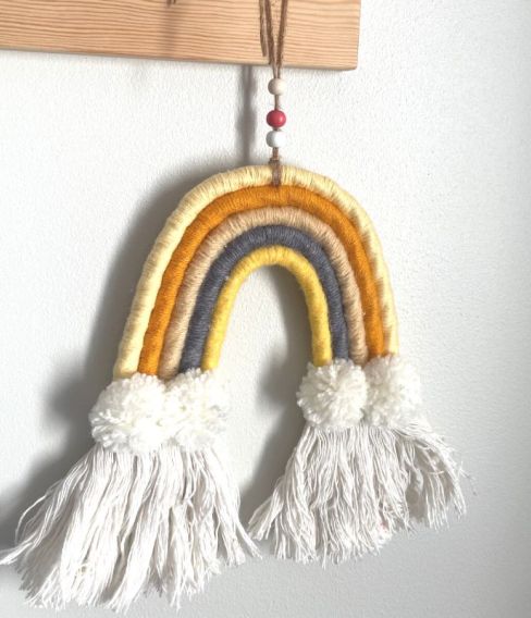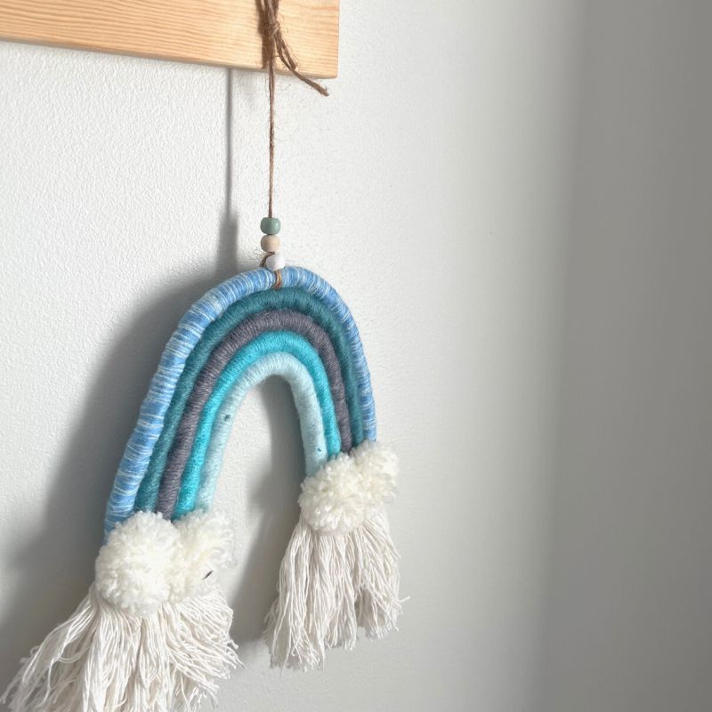 Underbar väggdekoration i form av en regnbåge. Häng den ovanför sängen eller var du vill för att skapa en drömvärld i ditt barns rum.