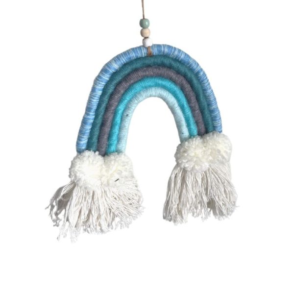 Underbar väggdekoration i form av en regnbåge. Häng den ovanför sängen eller var du vill för att skapa en drömvärld i ditt barns rum. Mått: 17 x 17 cmMaterial: 100% polyester