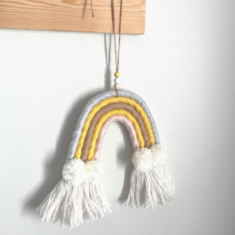 Underbar väggdekoration i form av en regnbåge. Häng den ovanför sängen eller var du vill för att skapa en drömvärld i ditt barns rum. Mått: 17 x 17 cmMaterial: 100% polyester