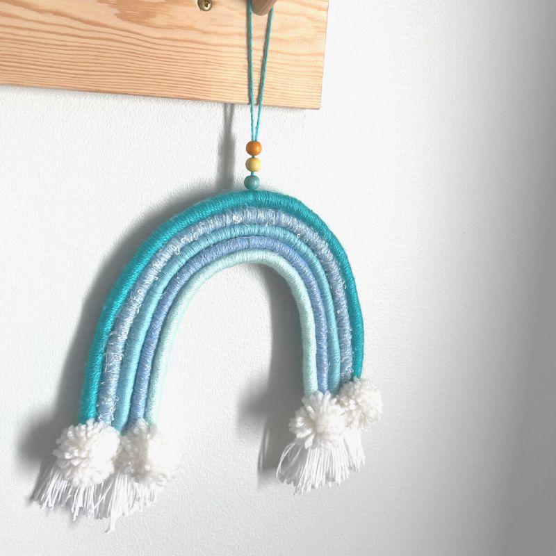 Underbar väggdekoration i form av en regnbåge. Häng den ovanför sängen eller var du vill för att skapa en drömvärld i ditt barns rum. Mått: 17 x 17 cmMaterial: 100% polyester