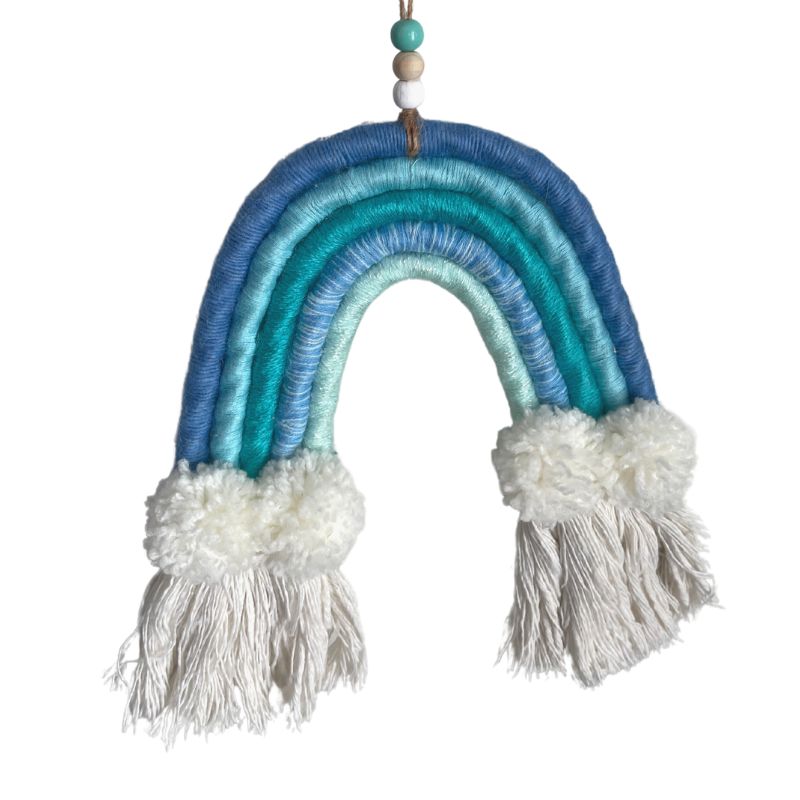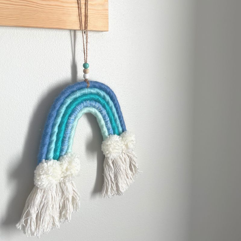 Underbar väggdekoration i form av en regnbåge. Häng den ovanför sängen eller var du vill för att skapa en drömvärld i ditt barns rum. Mått: 17 x 17 cmMaterial: 100% polyester