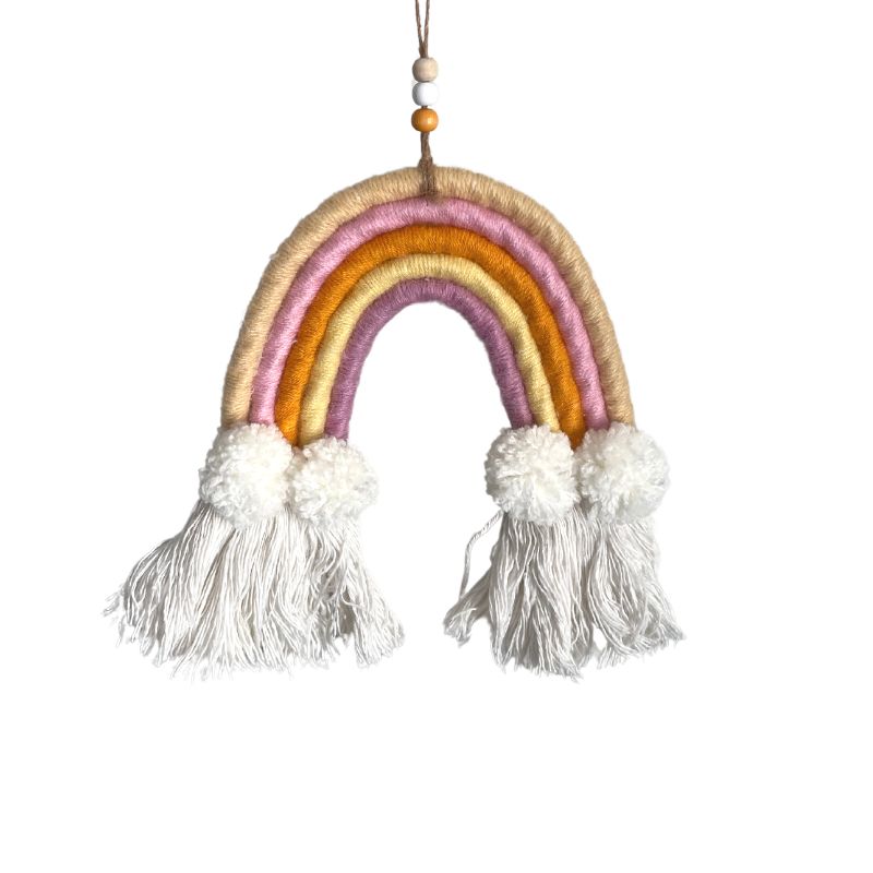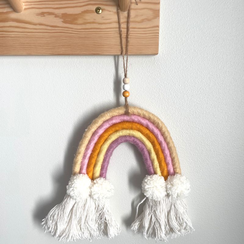 Underbar väggdekoration i form av en regnbåge. Häng den ovanför sängen eller var du vill för att skapa en drömvärld i ditt barns rum. Mått: 17 x 17 cmMaterial: 100% polyester