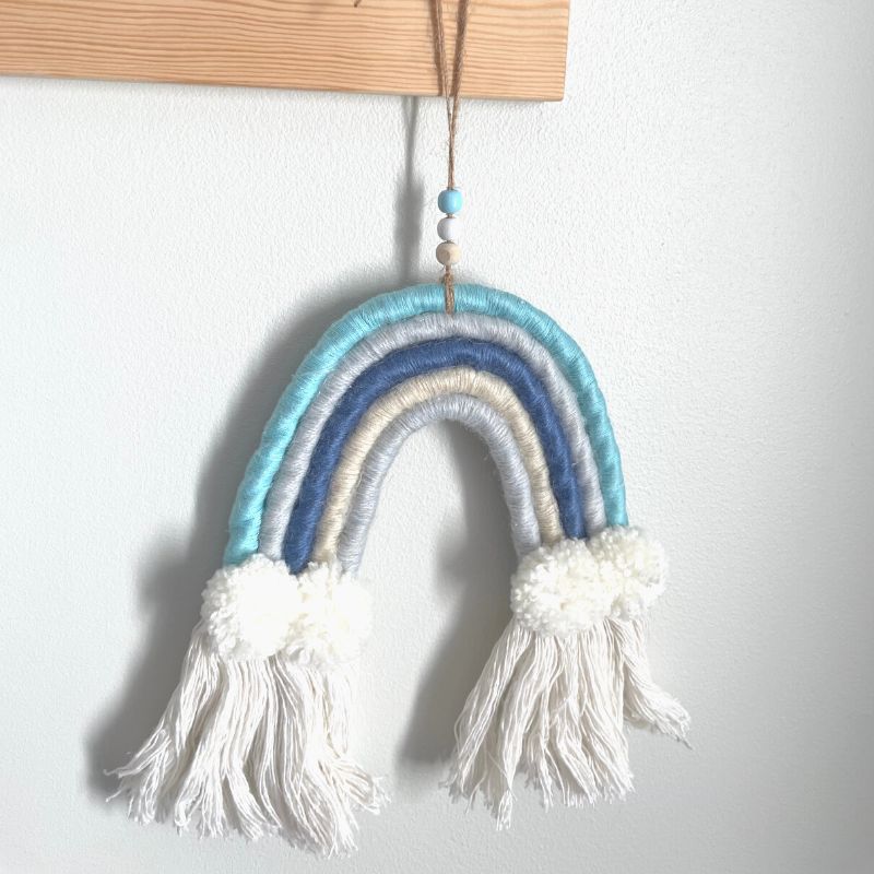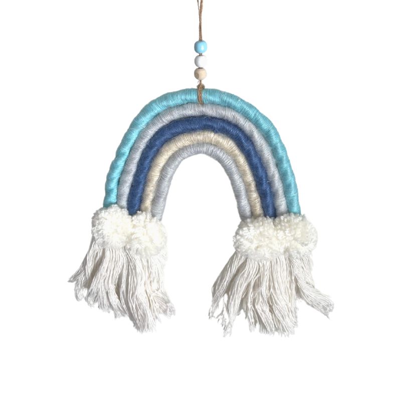 Underbar väggdekoration i form av en regnbåge. Häng den ovanför sängen eller var du vill för att skapa en drömvärld i ditt barns rum. Mått: 17 x 17 cmMaterial: 100% polyester