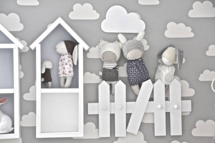 En mycket fin vägghängare för barn i formen av ett staket. Inte bara är denna hängare praktiskt, utan ger även ett mycket vackert inrcyk i barnrummet.
