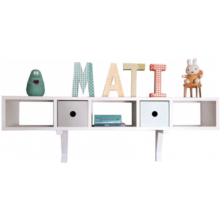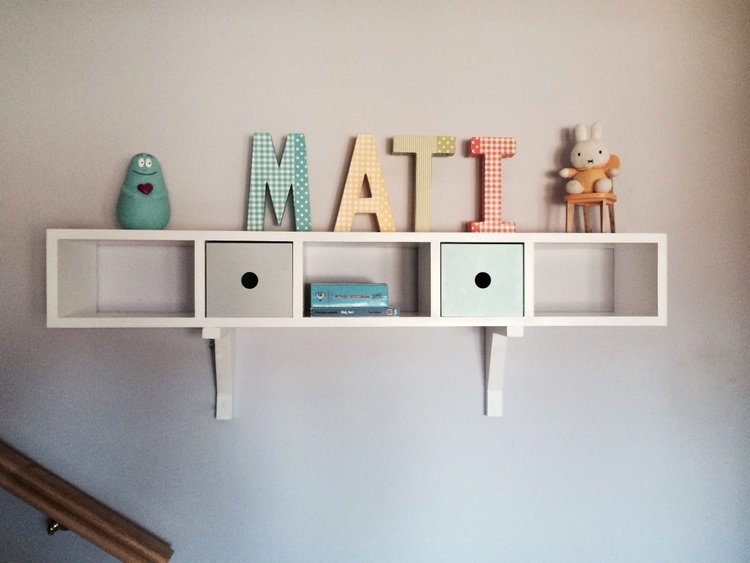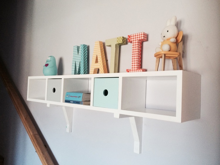 En rektangulär, snygg och praktisk vägghylla till barnrummet i den populära serien Cameleon. Du väljer själv färgen på de två lådorna samt själva hyllan och kan därigenom skapa din egna unika hylla.