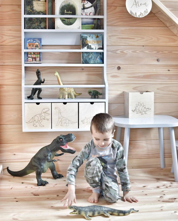 En fantastisk vägghylla för barnrummet som du själv kan ändra utseende på beroende på vad som placeras på den. Det är en rymlig bokhylla där barnet kan lagra sina mest värdefulla ägodelar och sina finaste böcker. Samtidigt med tre fina lådor för en bra förvaring. Du väljer själv vilka färger du vill ha på stommen och kan på det sättet anpassa den helt efter inredningen i just ditt barnrum.…