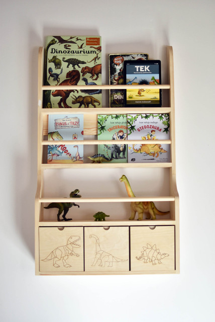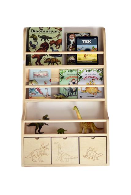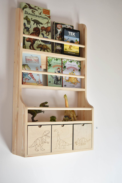 En fantastisk vägghylla för barnrummet som du själv kan ändra utseende på beroende på vad som placeras på den. Det är en rymlig bokhylla där barnet kan lagra sina mest värdefulla ägodelar och sina finaste böcker. Samtidigt med tre fina lådor för en bra förvaring.