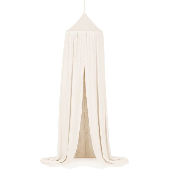 En mycket charmig och vacker natur/beige sänghimmel tillverkad av högkvalitativt linne. Designad i en enkel form och i en typisk skandinavisk stil. I varje rum som denna används kommer en sagokänsla att spridas. Perfekt för att inreda barnrummet på ett bra sätt. Sänghimmeln är dessutom förberedd med en praktisk anordning i mitten för att kunna hänga favoritsakerna.