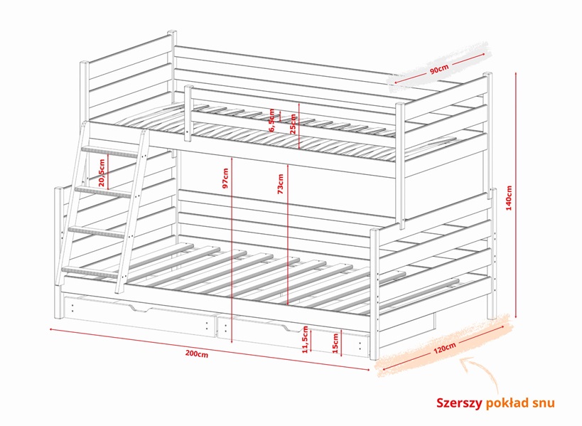 Figaro är en fantastisk våningssäng med en bredare nedre säng! Perfekt för syskonen i ett litet rum, eller för ditt barns vänner när de ska sova över.