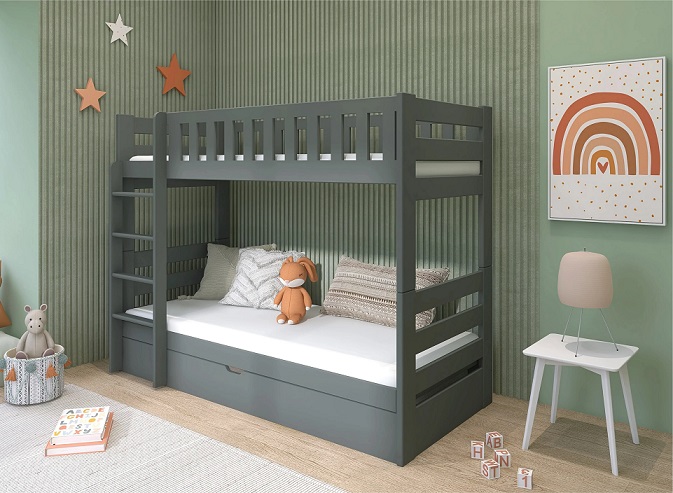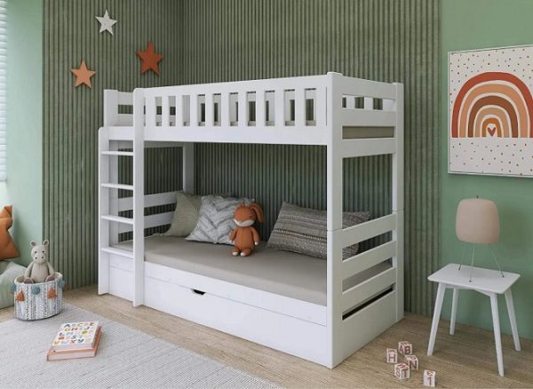 Sängarna tillverkas enligt standarden EN-747-1: 2012 + A1: 2015 i vår fabrik i Europa som har de högsta säkerhetsstandarderna för produktion av barnsängar. och kontrollerar varje steg från det att timret kommer in i fabriken till att en färdig produkt lämnar. Sängarna lackeras tre gånger med ekologisk, miljövänlig och vattenbaserad färg som följer normen EN 71-3:2019.