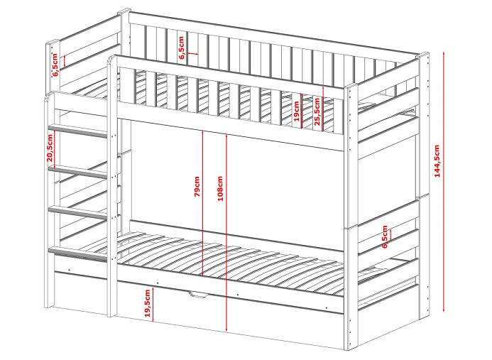 Detta är en säng tillverkad och anpassad för barn. Sängen levereras omonterad och bör sättas ihop i rummet den skall användas i.