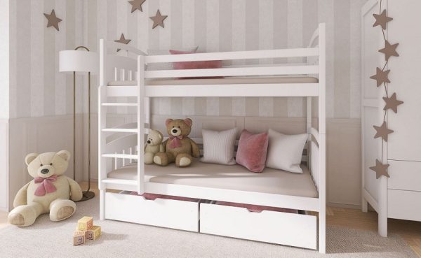 På vår fina våningssäng Grace har man tänkt till ordentligt för att optimera golvytan i barnrummet. Vi lovar att sängen kommer bli ditt barns favorit, och inte bara för att sova i då den med enkla medel kan bli en riktigt bra myshörna. Många dekorerar med sänghimlar, vimplar eller ljusslingor, bara din kreativitet sätter stopp.